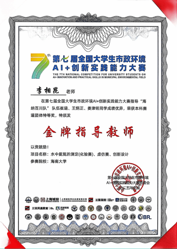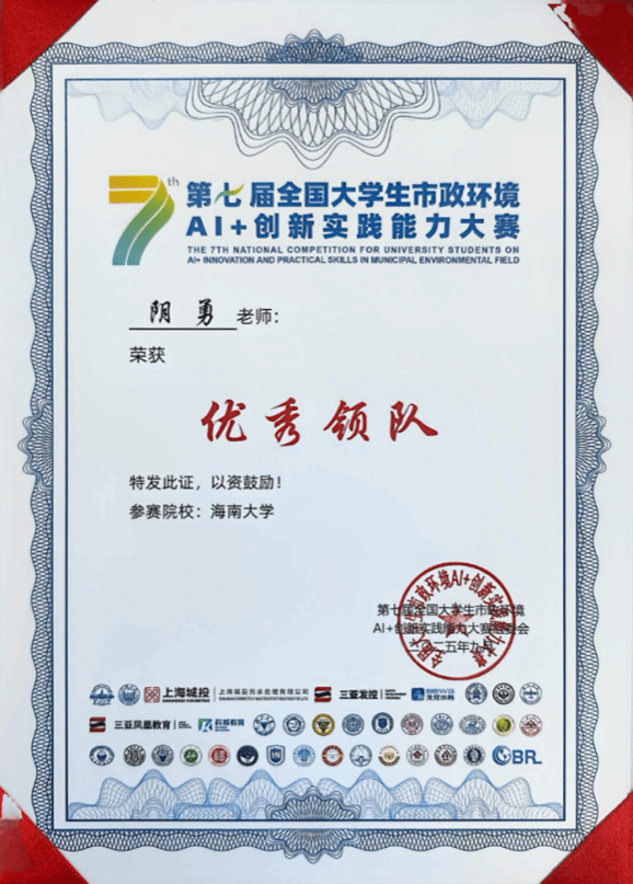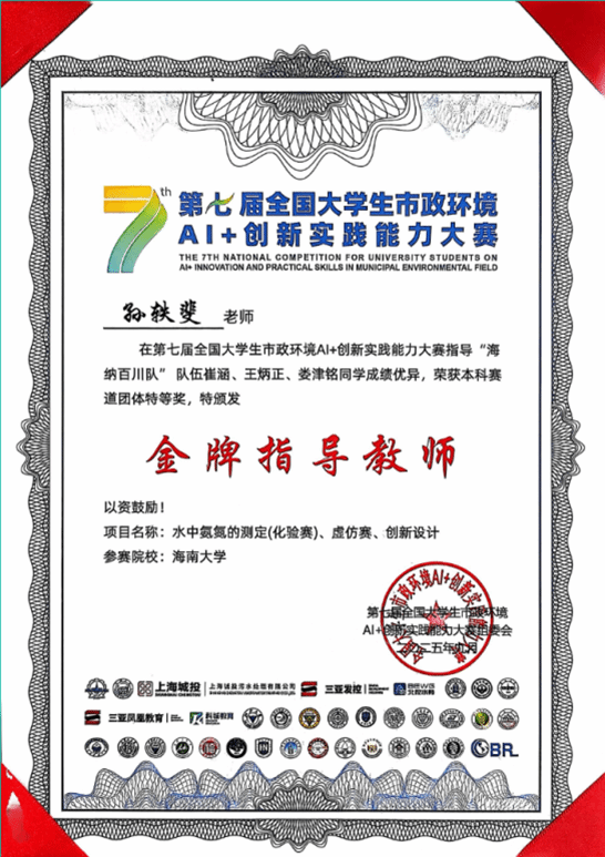 2025 年 9 月 20 日至 21 日,第七届全国老员工市政环境 AI + 创新实践能力大赛决赛在三亚市顺利举行。本届大赛由哈尔滨工业大学、同济大学、上海城投污水处理有限公司、三亚发展控股有限公司及北控水务集团有限公司联合主办,在规模上创下历届之最——共覆盖全国 179 所高校,吸引 671 支队伍参赛,汇聚了哈尔滨工业大学、同济大学、北京师范大学、天津大学、中山大学等国内顶尖院校,参赛阵容与竞争激烈程度均远超以往。在这场高规格的全国性赛事中,公司本科生团队凭借扎实的专业能力与创新实践成果,最终在全国决赛中斩获 “团体特等奖”。