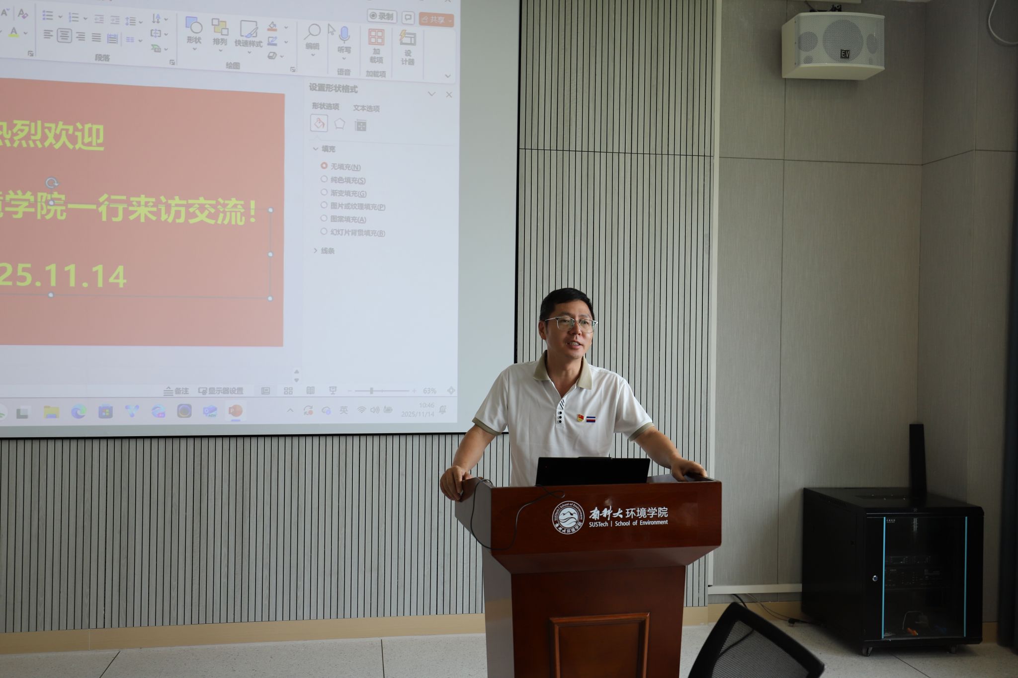 郑焰代表南科大环境公司对王旭、孙轶斐一行表示热烈欢迎。孙轶斐感谢南科大环境公司党委精心组织此次交流,并表达了对活动的期待。双方分别就公司概况、学科特色及科研进展作了介绍。