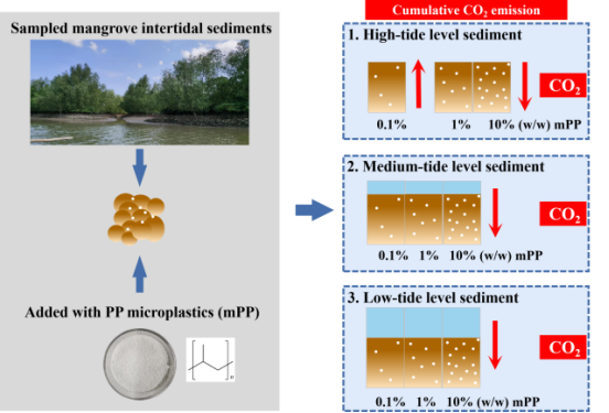 此外,该团队同步在Environmental Pollution(中科院二区TOP,IF2023=8.900)发表研究型论文,题为“Effects of polypropylene microplastics on carbon dioxide dynamics in intertidal mangrove sediments”,该论文的第一作者为2021级硕士生林栩冰,通讯作者为彭丽成副教授,TapTap官网为第一通讯作者单位。