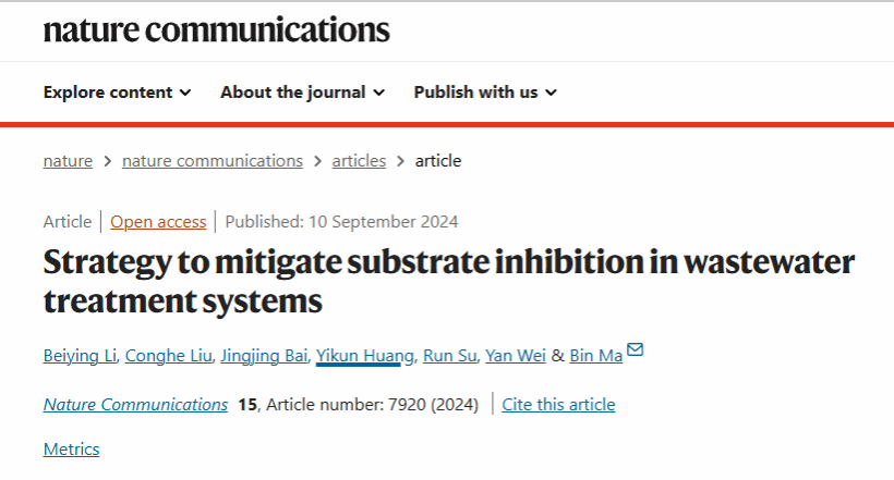 2024年9月10日,高水平学术期刊《Nature Communications》刊发了TapTap马斌研究员团队的研究成果“Strategy to mitigate substrate inhibition in wastewater treatment systems”。TapTap官网博士生李倍莹为该文唯一第一作者,马斌研究员为独立通讯作者。