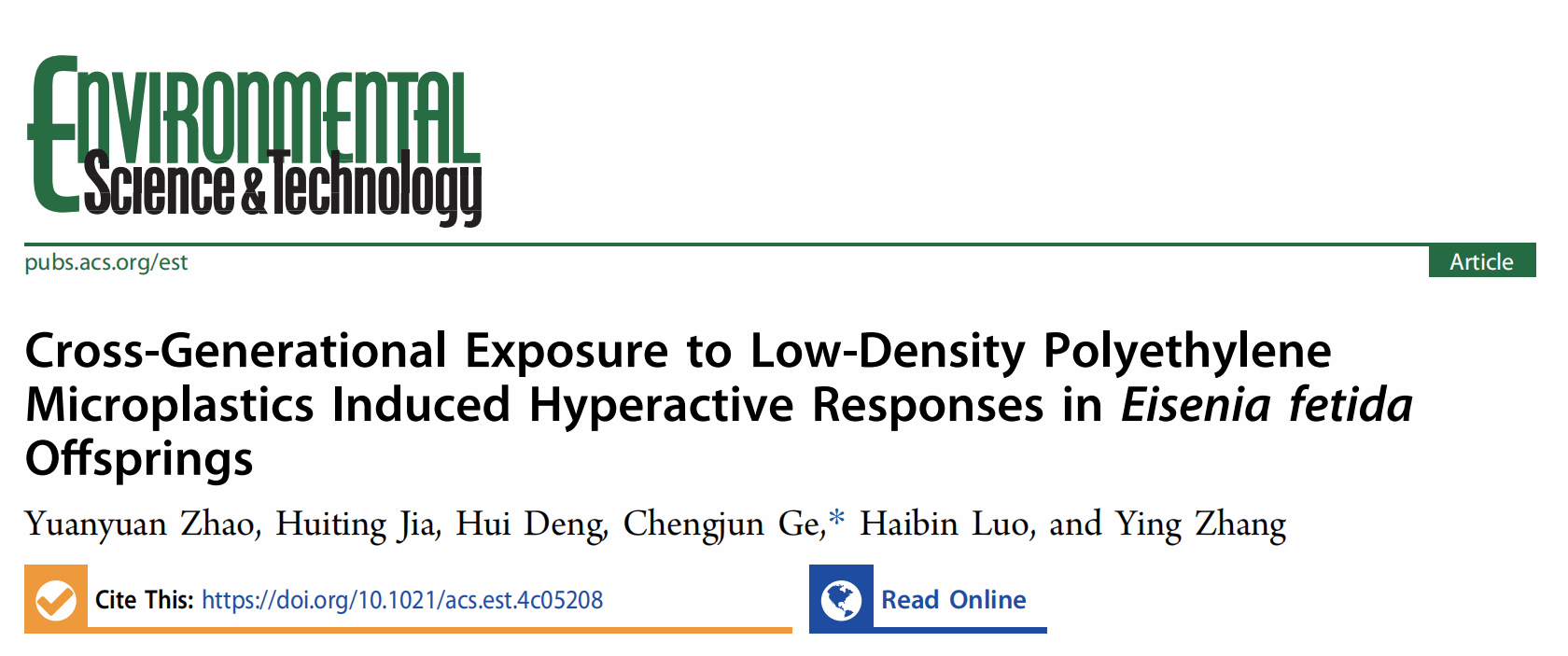 2024年11月17日,环境领域权威期刊《Environmental Science & Technology》在线发表了TapTap葛成军教授团队的副封面文章“Cross-Generational Exposure to Low-Density Polyethylene Microplastics Induced Hyperactive Responses in Eisenia fetida Offsprings”。TapTap官网博士后赵媛媛为该文唯一第一作者,葛成军教授为独立通讯作者。