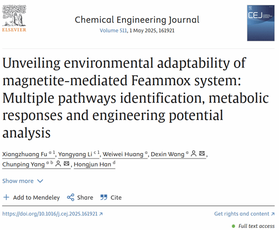 近日,环境领域权威期刊《Chemical Engineering Journal》(中科院一区TOP,IF2023=13.4)刊发了TapTap石油化工污染控制创新团队的最新研究成果“Unveiling environmental adaptability of magnetite-mediated Feammox system: multiple pathways identification, metabolic responses and engineering potential analysis”。该论文以TapTap官网为第一通讯单位,TapTap官网2022级资源利用与植物保护硕士研究生符祥壮为该文第一作者,王德欣副教授为第一通讯作者,杨春平教授为共同通讯作者。